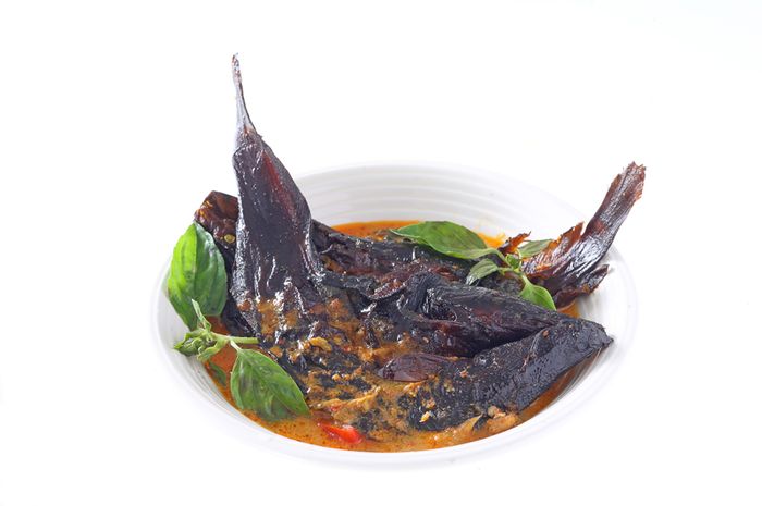 Ikan Pari Asap Terong Hijau Santan Pedas Mangut Genjong