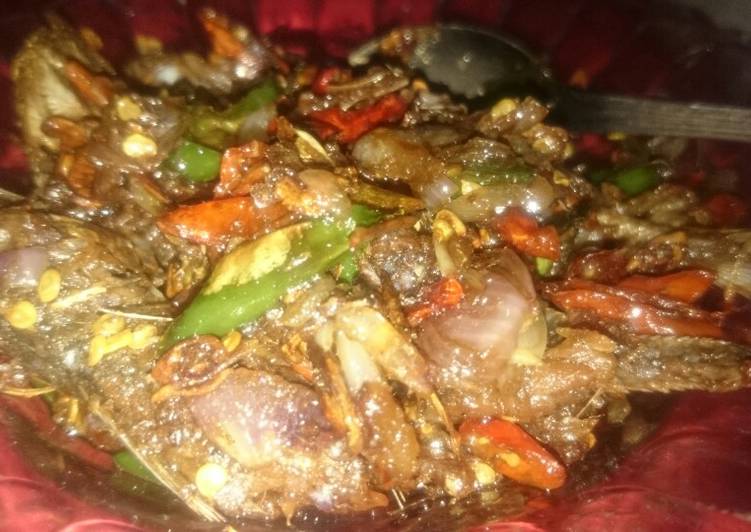 Balado ikan asin japuh. Makanan bergizi saluran.